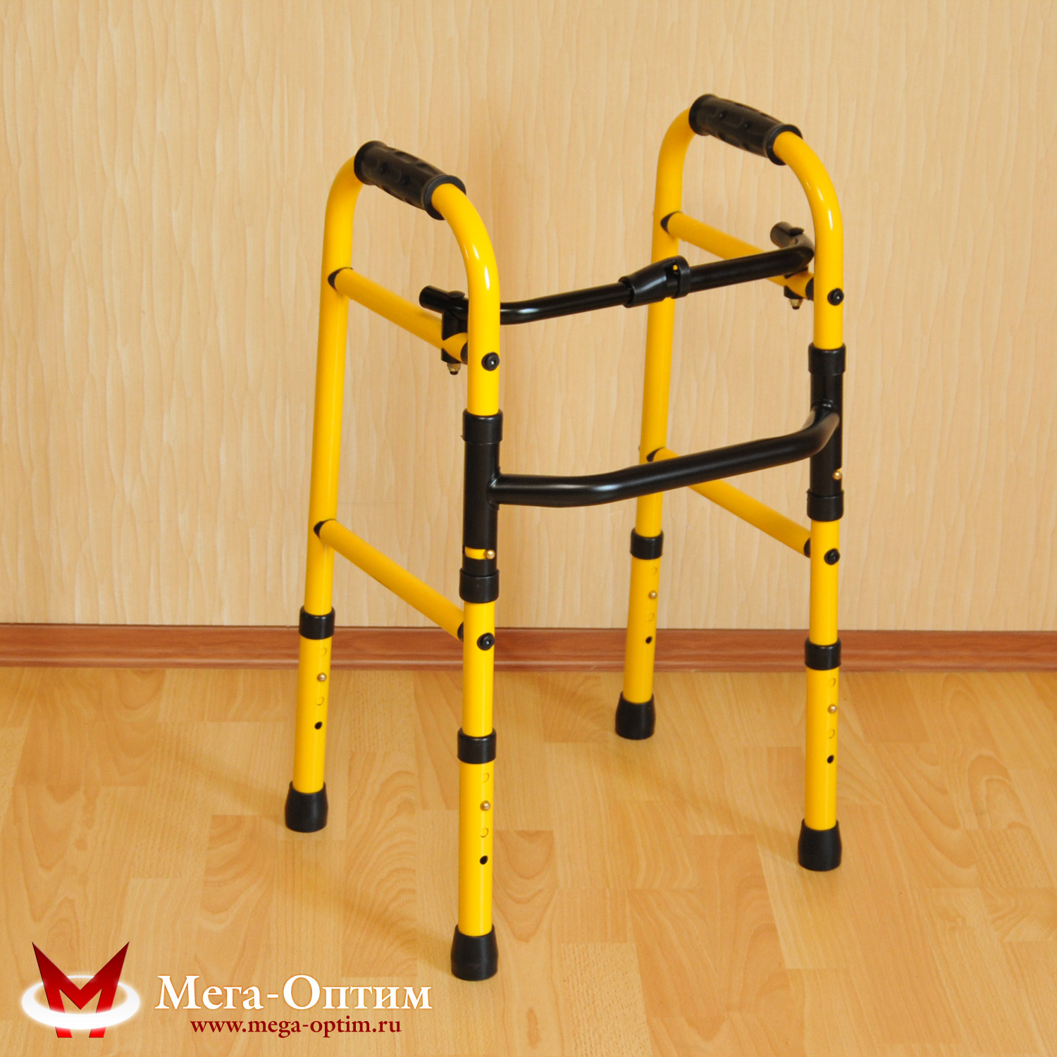 Опоры-ходунки используются для реабилитации инвалидов, обеспечивают надежную опору при передвижении людей с нарушением двигательных функций. Ходунки имеют складную конструкцию, изготовленную из алюминиевых трубок с лаковым защитным покрытием. Надежная фиксация в рабочем положении обеспечивается кнопочными замками — простыми, удобными и безопасными в обращении. На боковых опорах установлены мягкие поручни. Высота опоры регулируется через 2,5 см. При ходьбе пациенту следует переставлять ходунок вперед и опираясь на поручни, сделать шаг.