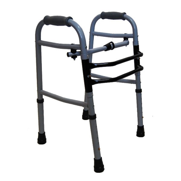 Для складывания ходунков необходимо: нажать кнопочный фиксатор на верхней перекладине, затем сложить ходунок.