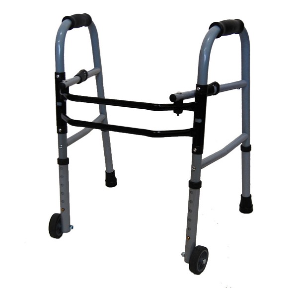 Для складывания ходунков необходимо: нажать кнопочные фиксаторы на центральной перекладине, затем сложить ходунок.